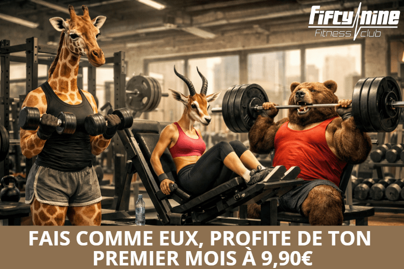 Chez Fiftynine, nos exercices de prédilection sont : le squat (avec une barre et des poids), le soulevé de terre, le développé couché, le développé militaire (ou « développé devant »), et les tractions. Variez les poids utilisés, faites des petites répétitions avec des charges élevées pour optimiser votre performance.